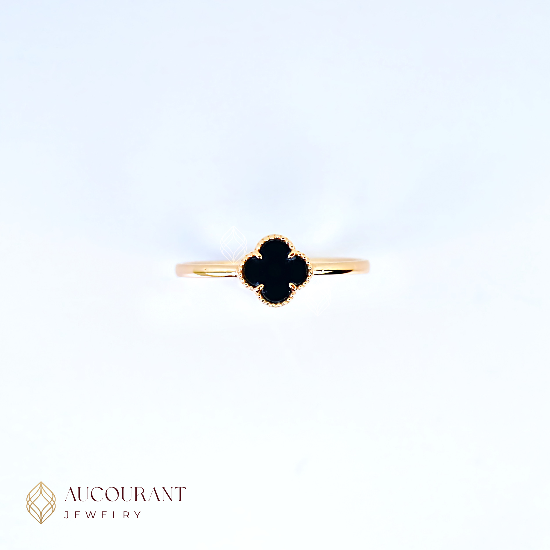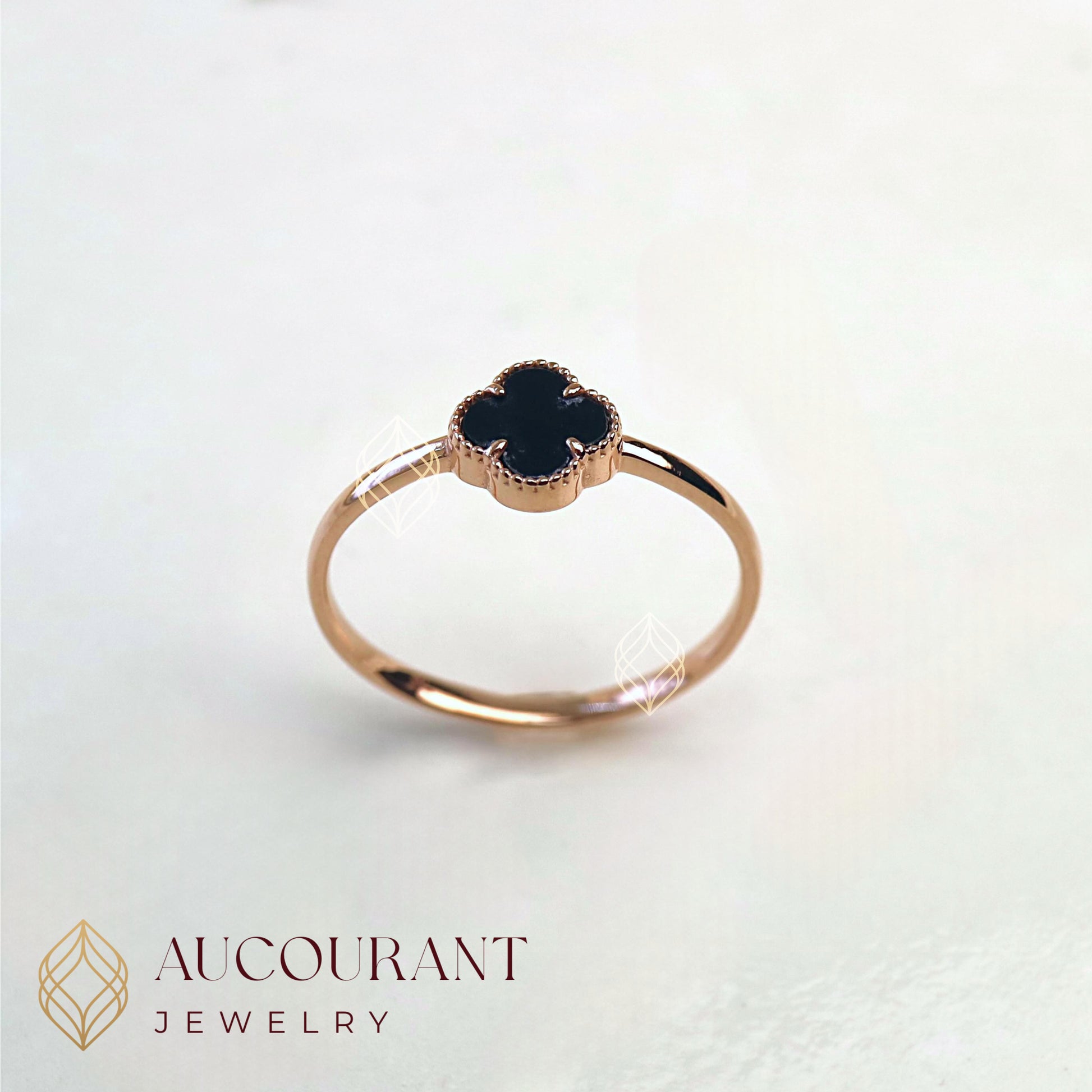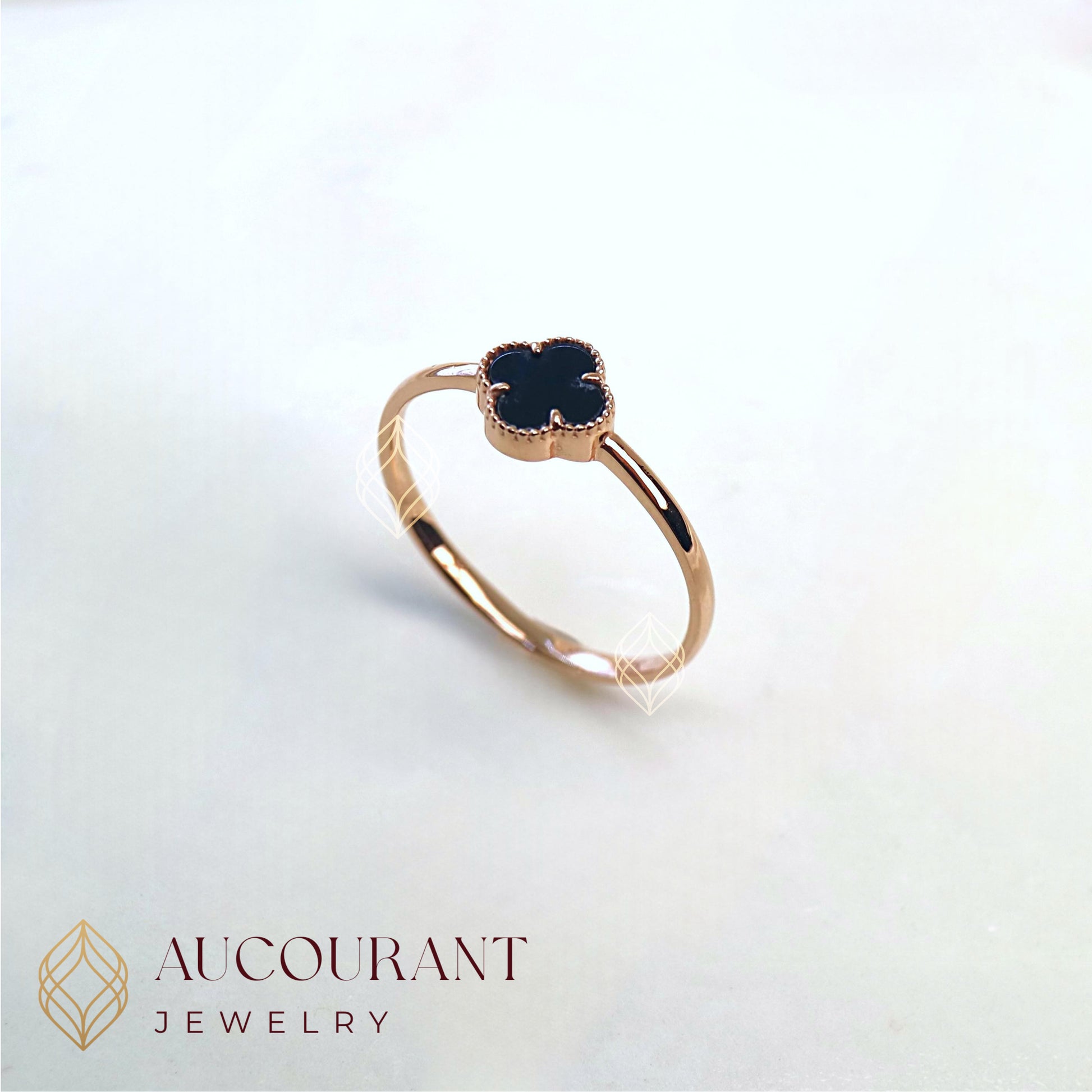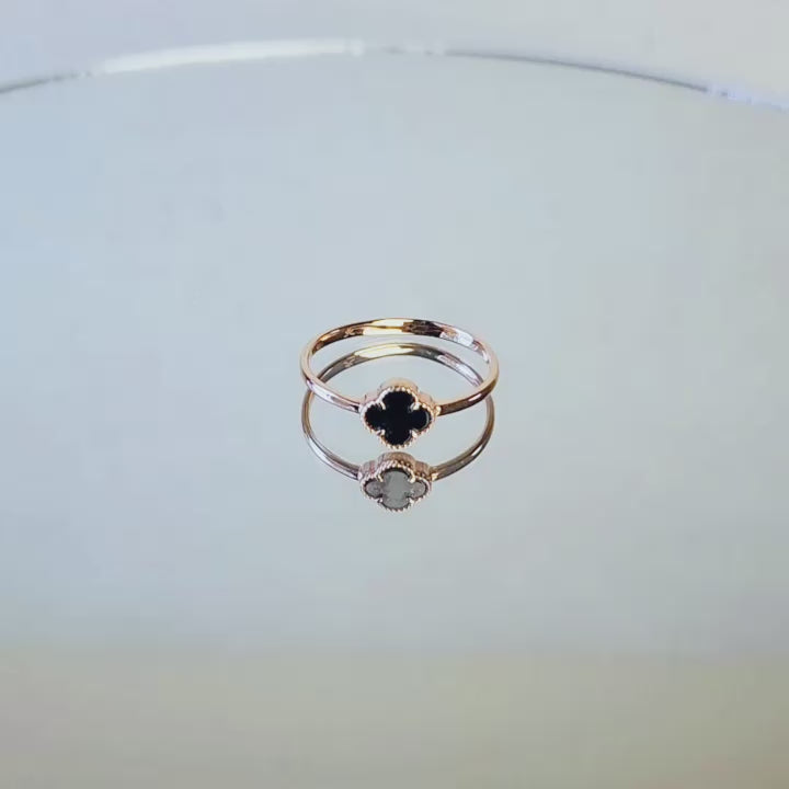 Clé Noire (cincin dengan motif hitam berbentuk clover) - Emas Rose Gold 17K