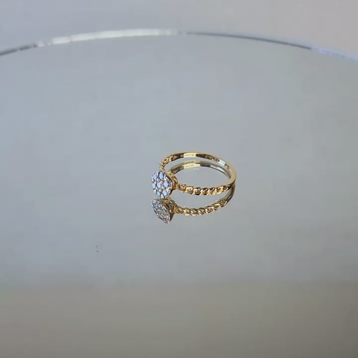 Cincin Solitiare atau Floral DazzleCincin emas 17K dengan desain floral sparkling yang feminin dan mempesona. Makna: Kilau bunga yang tak pernah layu. Tagline: Kilau bunga yang tak layu.Spesifikasi Produk